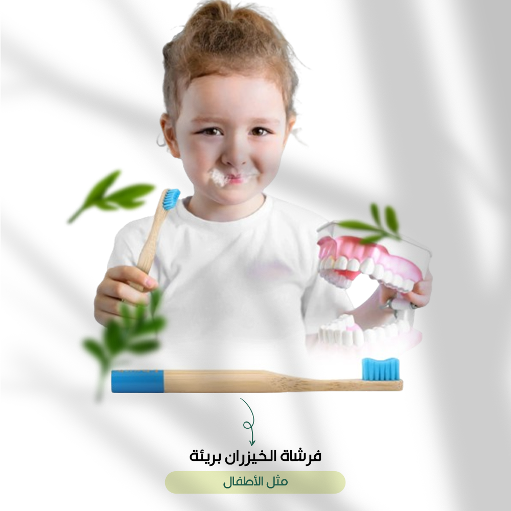 فرشاة اسنان بقبضة خشبية من الخيزران الطبيعي ١٠٠٪ المقاوم للتعفن وبحجم مثالي لاستخدام الطفل